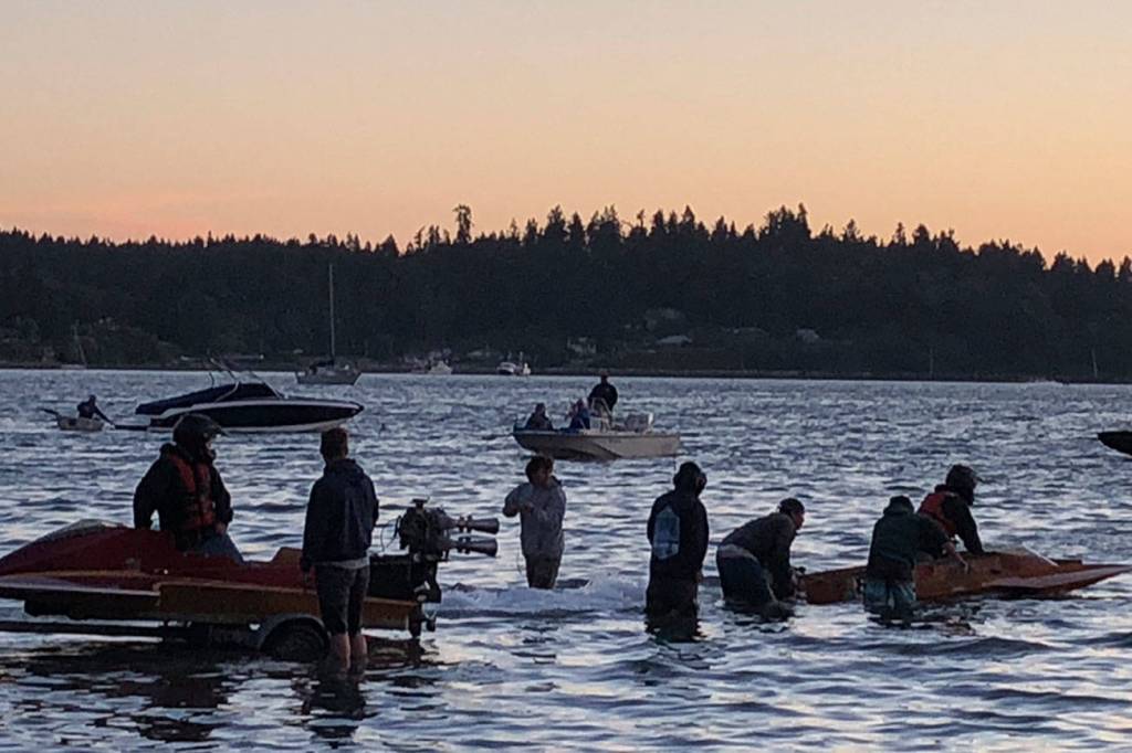 It was a beautiful Fourth of July morning as the sun came up glowing red over Portage. Inner Quartermaster Harbor was flat calm, perfect conditions for hydroplanes. But at the Jensen Point park launch ramp, the five hydro drivers ready to run the traditional around-the-island race were concerned with the wind blowing strong out of the north.