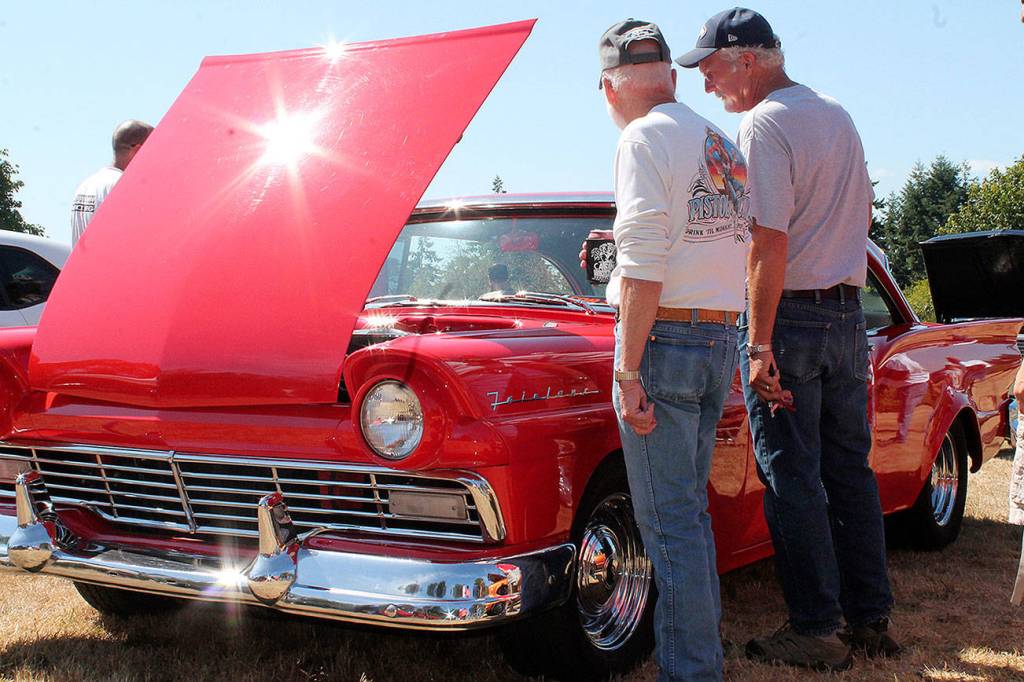 The event, which began almost 18 years ago, has exploded in size in recent years, with more people coming from off-island to admire the fossil-fueled finery on display. In the past four years alone, the number of vehicles in the show has more than doubled, with cars lining the Engels property all the way to Kingsbury Road. Last year, Engels explained, one car club from Port Orchard showed up with seven hot rods and a motorcycle; this year, they plan to return with 35 vehicles. Still, he said, most of the people who exhibit at the event are from Vashon, bringing out cars that have been tucked away in barns and garages in out-of-the-way island spots for most of the year.