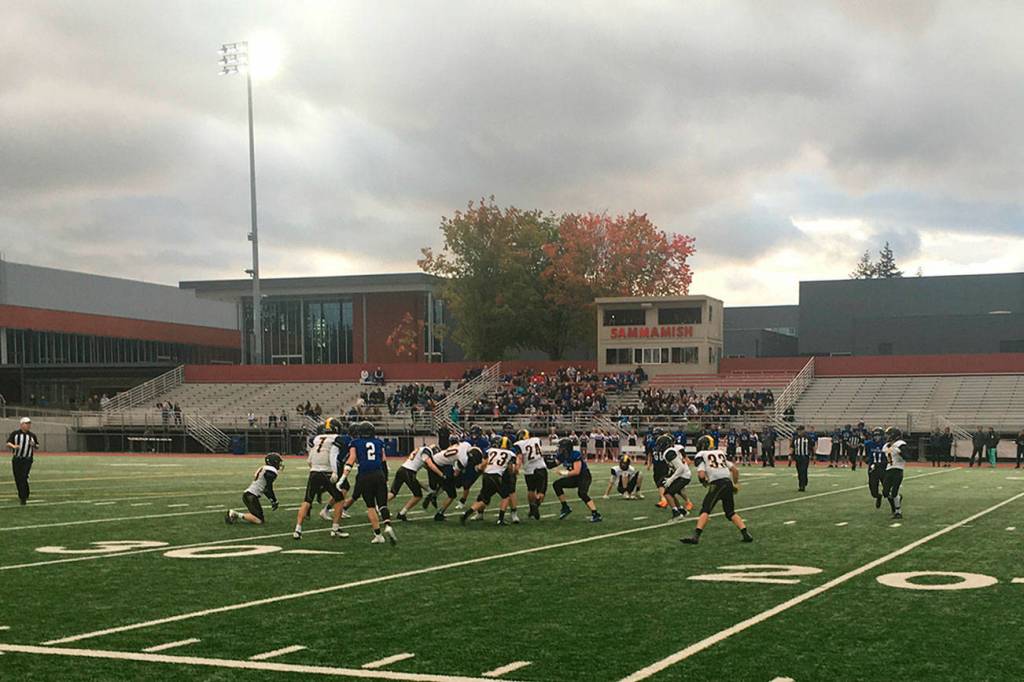 Vashon received the kickoff at the start of the game, achieving a first down, but the drive ended in a fourth-down punt. Bellevue Christian made good on its first possession when the Vikings’ talented quarterback, senior Mick Larsen, scored the first touchdown on a keeper play.