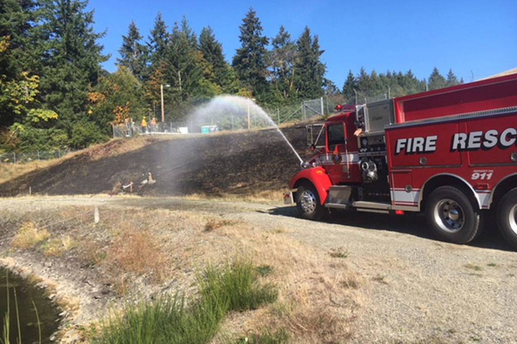On the morning of Sept. 27, Vashon Island Fire & Rescue responded to a brush fire at the transfer station, above.