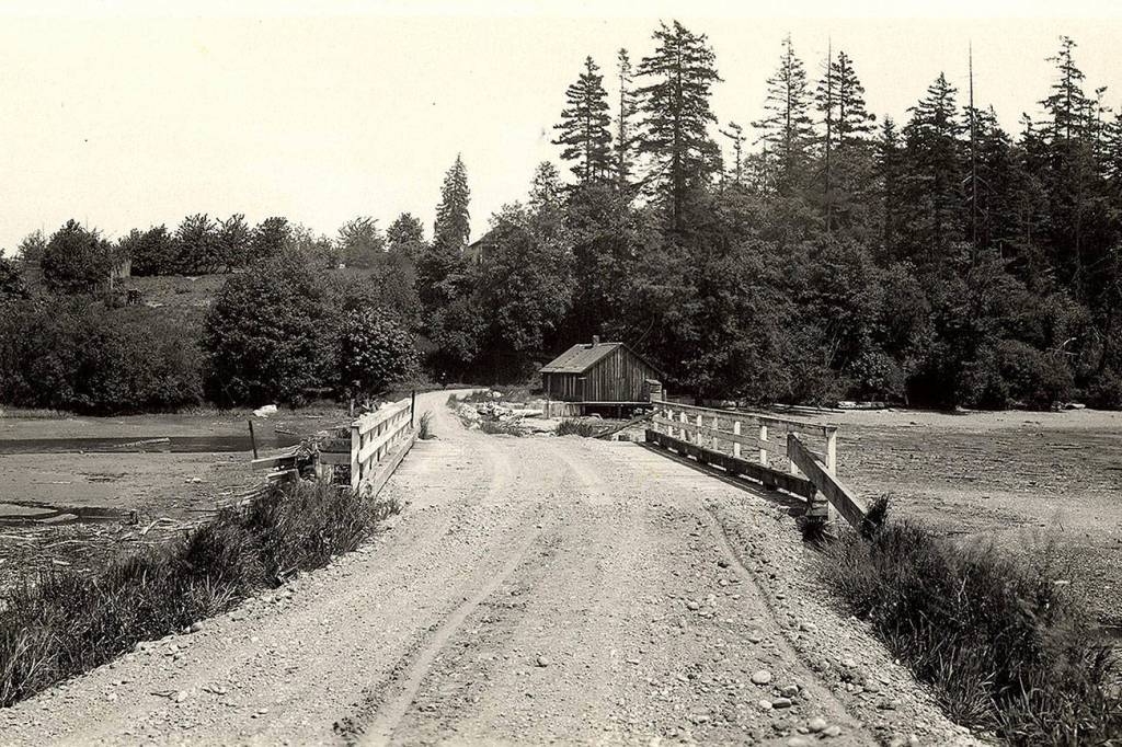 Now, the lagoon is surrounded by homes and pastures, the ends of the causeway are still there, but the bridge is long gone, burned in the 1950s to allow boats access to the lagoon, at least at high tide. The remnants of the salmon pond dam are still visible in the Terry Donnelly photograph, and the rips created as the tide floods or ebbs in the lagoon, called Vashon Rapids, are a favorite for those brave enough to ride the rips on paddle boards or kayaks. It is also a favorite for intrepid water skiers to scream into the lagoon, make a tight fast turn and scream back out in less time than it takes to tell.