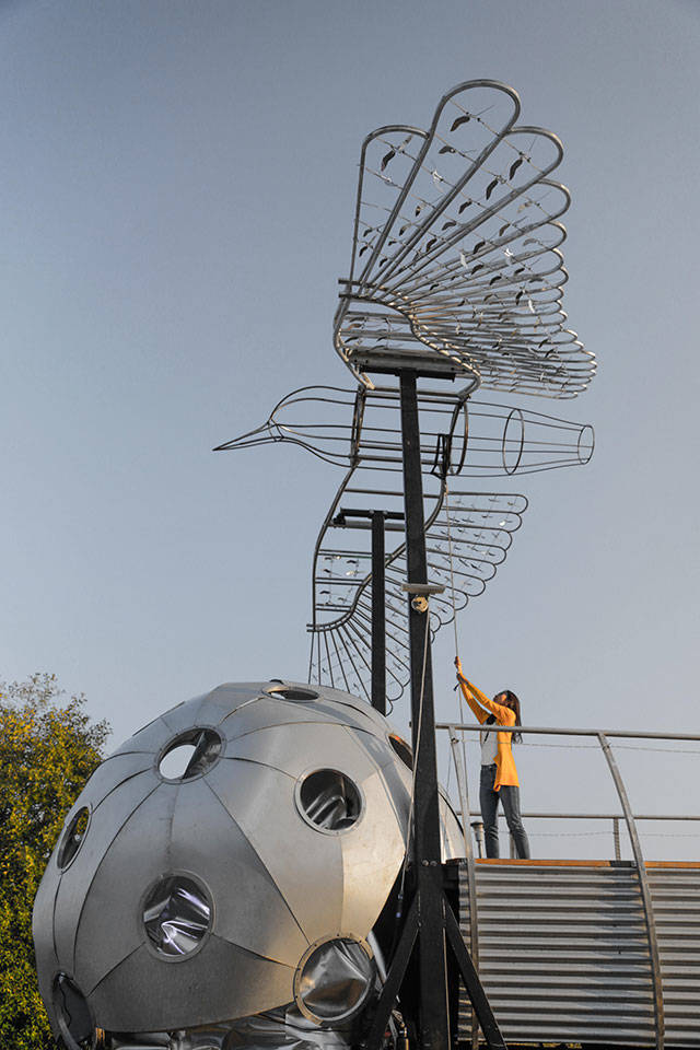 Throughout Saturday afternoon, attendees will have the opportunity to interact with the sculpture by pulling a rope to flap the large bird’s wings and give it the gift of flight. Lelavision’s co-founder and choreographer Leah Mann said the site of the sculpture will allow for views of the sound and the city that will cultivate a sense of place and awe.