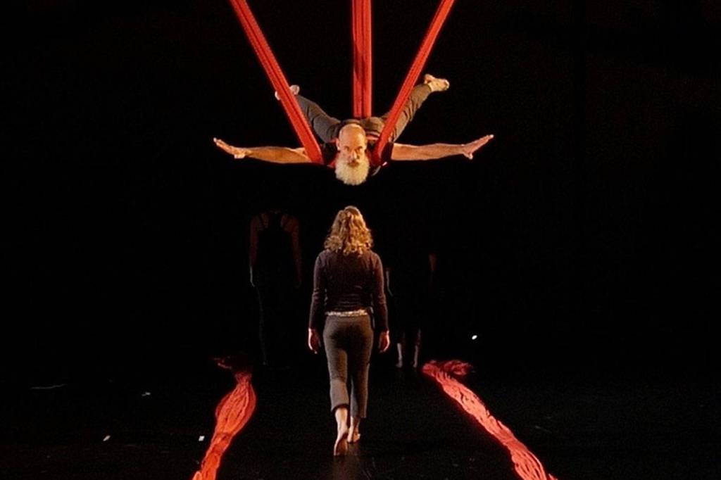 Glen Easley has graduated from aerial student to professional under the tutelage of Esther Edelman, director of “Secrets I Can’t Remember: Aerial Dance and Theater All Mixed Up.” He’ll perform the show with other cast members at Open Space for Arts & Community (Courtesy Photo).