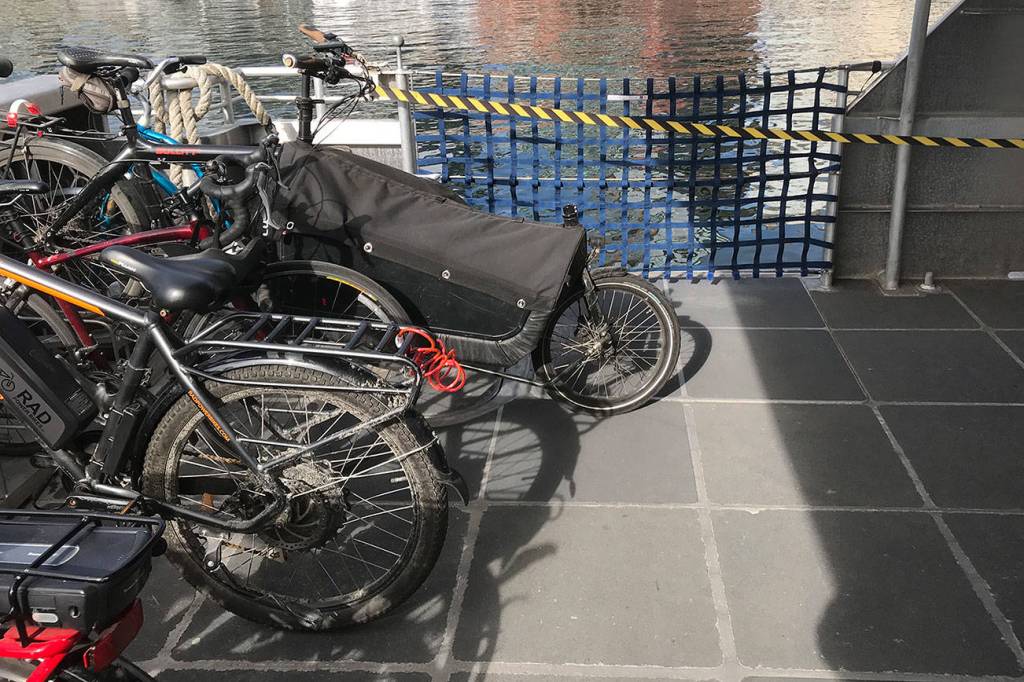 A safety line was installed on the Sally Fox and Doc Maynard that depicts the maximum allowed length of a bicycle that can be safely secured in the onboard bike racks. To help riders confirm their bike is within the allowable dimensions, measuring boxes will be available. One box is installed at Pier 52, and boxes will be placed at the Vashon and West Seattle docks.