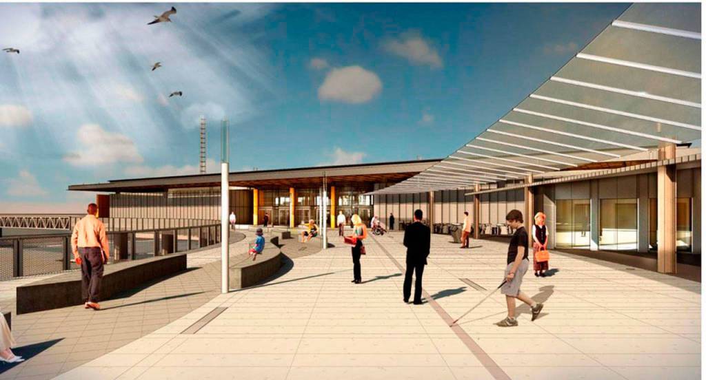 The new passenger ferry terminal represents a major investment in passenger ferry service and the region’s long-term mobility, connecting downtown Seattle with West Seattle, Vashon and the Kitsap Peninsula. The new covered facility will have room for approximately 500 passengers. Later this summer, the facility also will feature an observation platform overlooking the bay at the west end as construction progresses.