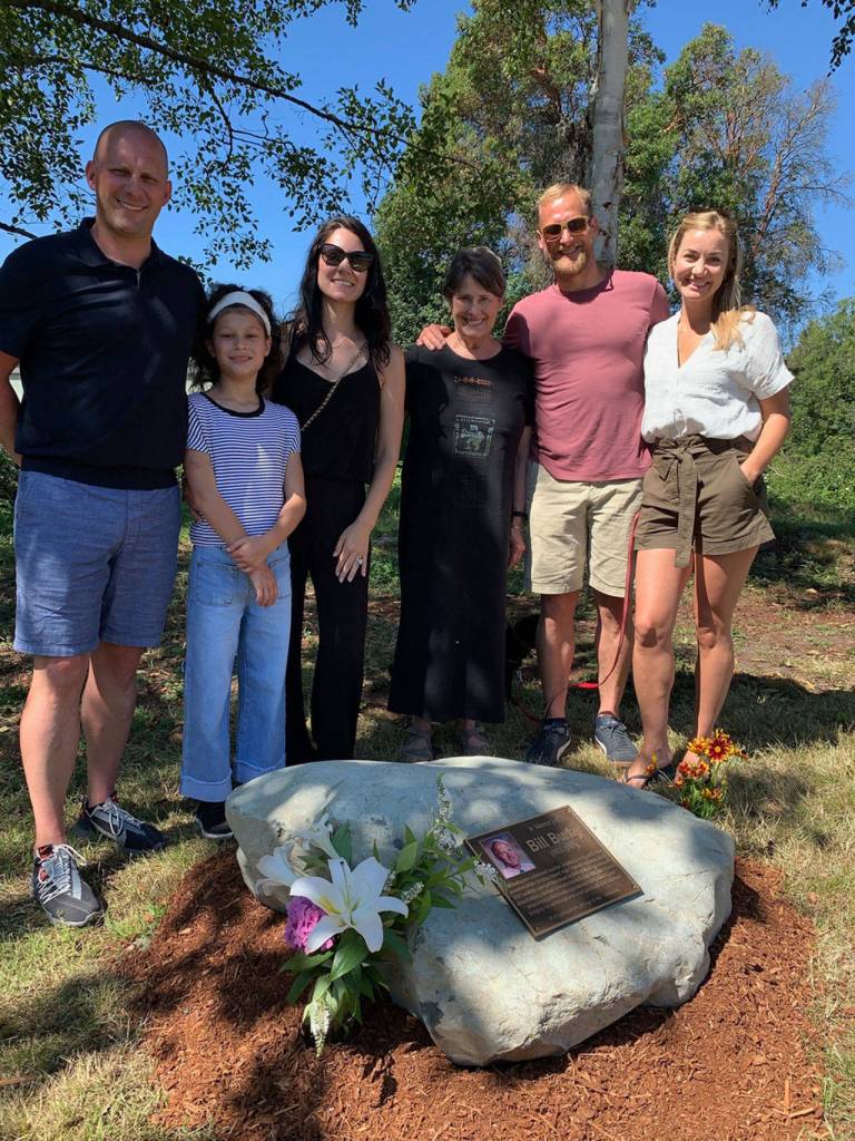 A new monument was dedicated to former teacher Bill Burby on Sunday, July 21. It was Strawberry Festival weekend, and the Burby sons and families were present for the annual Burby run/walk. Jason Burby, class of 1990 lives in Lake Oswego, Oregon. Aaron Burby, class of 1992, lives in San Francisco.