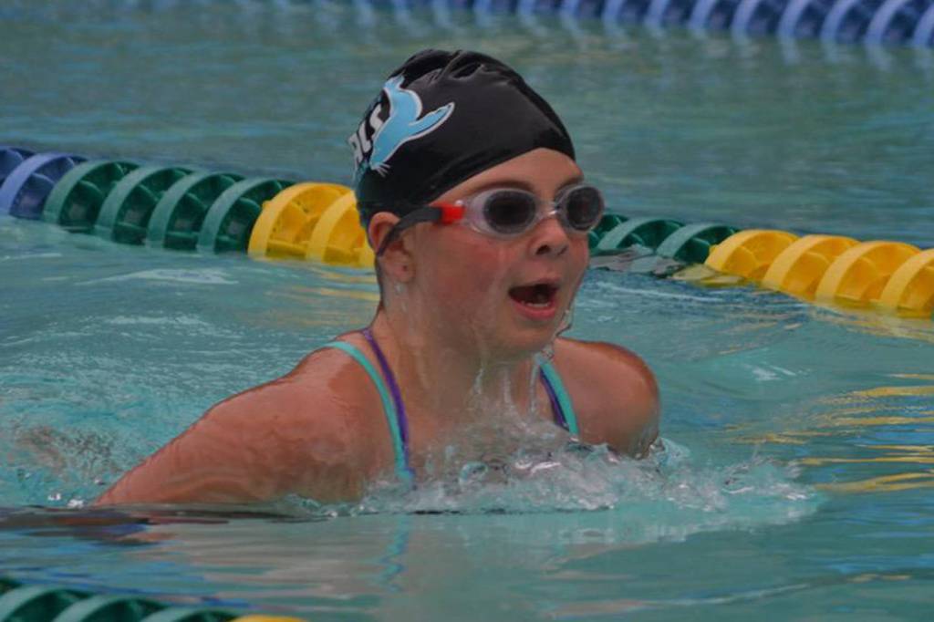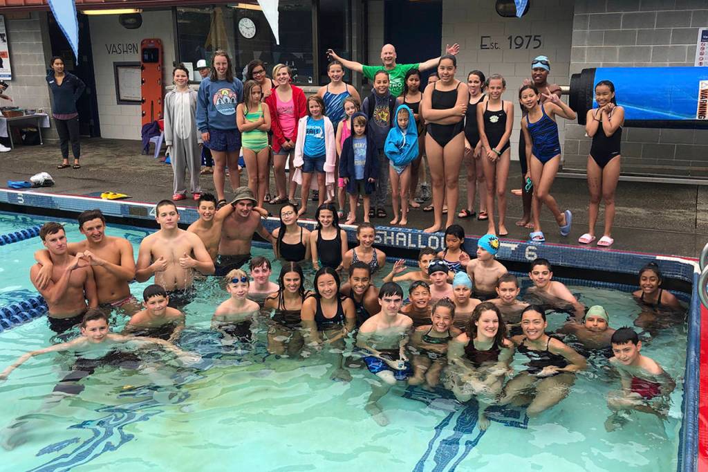 Above, members of the Vashon Seals Swim Team and the Tacoma Metro Ducks participated in their annual dual swim meet at the Vashon Community Pool early this month. A total of 70 swimmers from both teams, ranging in ages from 5 to 18 participated.