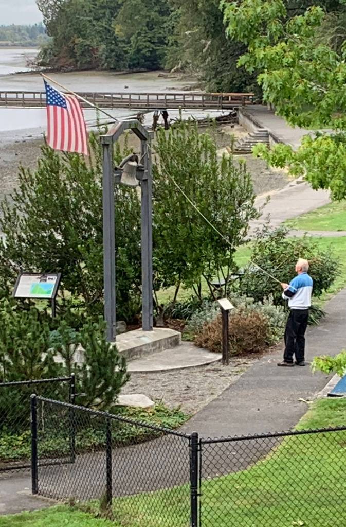 For Zellerhoff, a longtime Maury Island resident and general contractor, the tradition of ringing that bell on the anniversary goes back more than 10 years. Zellerhoff said he does it, regardless of who’s around the park in the morning, because he feels it is a fitting way to honor all the men, women and children who died in the terrorist airline hijackings in Washington, New York and Pennsylvania.