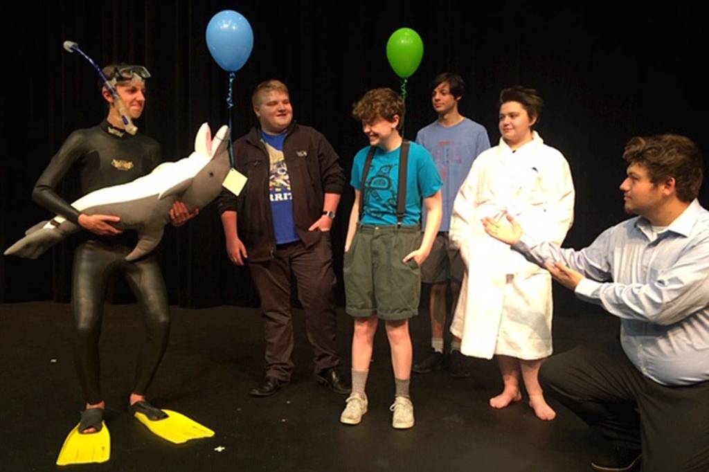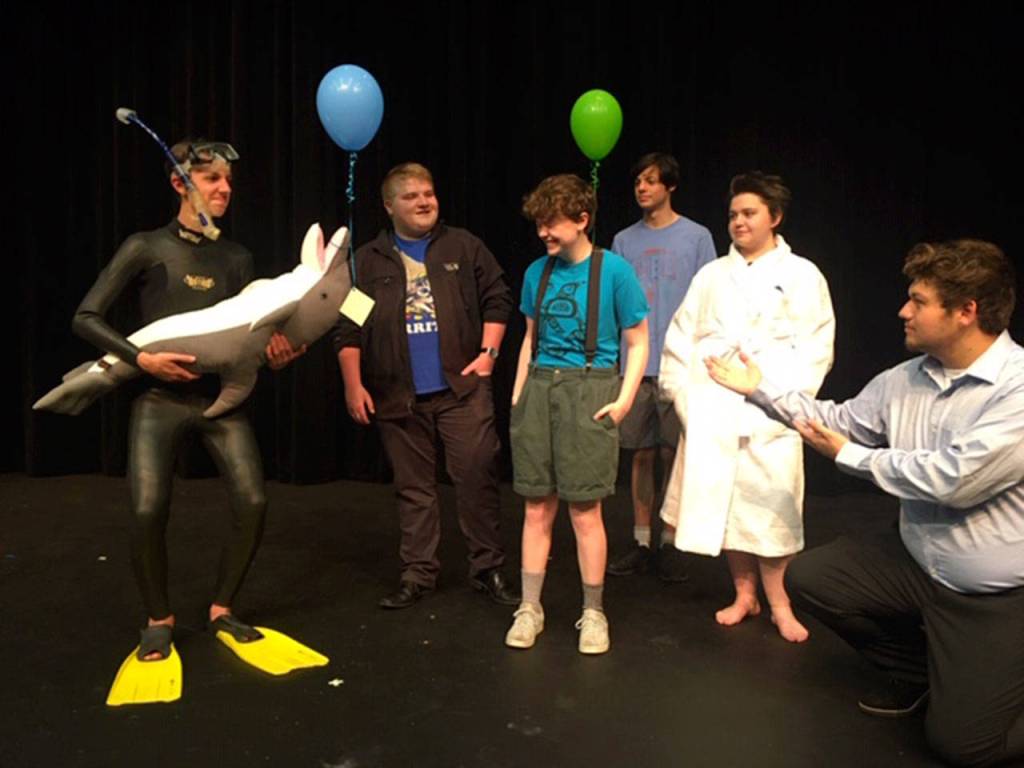 The show — clocking in at just an hour —has subject matter and language that some parents may find inappropriate for small children, but there are belly laughs and theatrical thrills for everyone else — including an appearance by one brave actor in a full wet-suit and flippers. Admission is by donation, from $1 to $100, with no one turned away for lack of funds. The students will also collect non-perishable food items for the Vashon Food Bank.