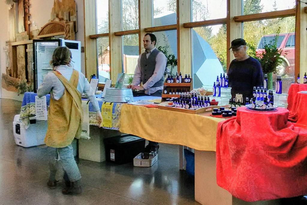 Last weekend, islanders shared and presented much of their produce and artisanal creations at VIGA’s first winter farmers market of the year, filling the lobby of Vashon Center for the Arts with vendors and patrons who had arrived to sample and purchase goods and produce. Up for sale was an assortment of leather goods such as handcrafted wallets and bound notebooks, jewelry, clothing and obsidian wind chimes, in addition to dairy products such as whole milk yogurt, Fromage blanc and whey fed pork, and hot food roasted on sizzling grills outside.