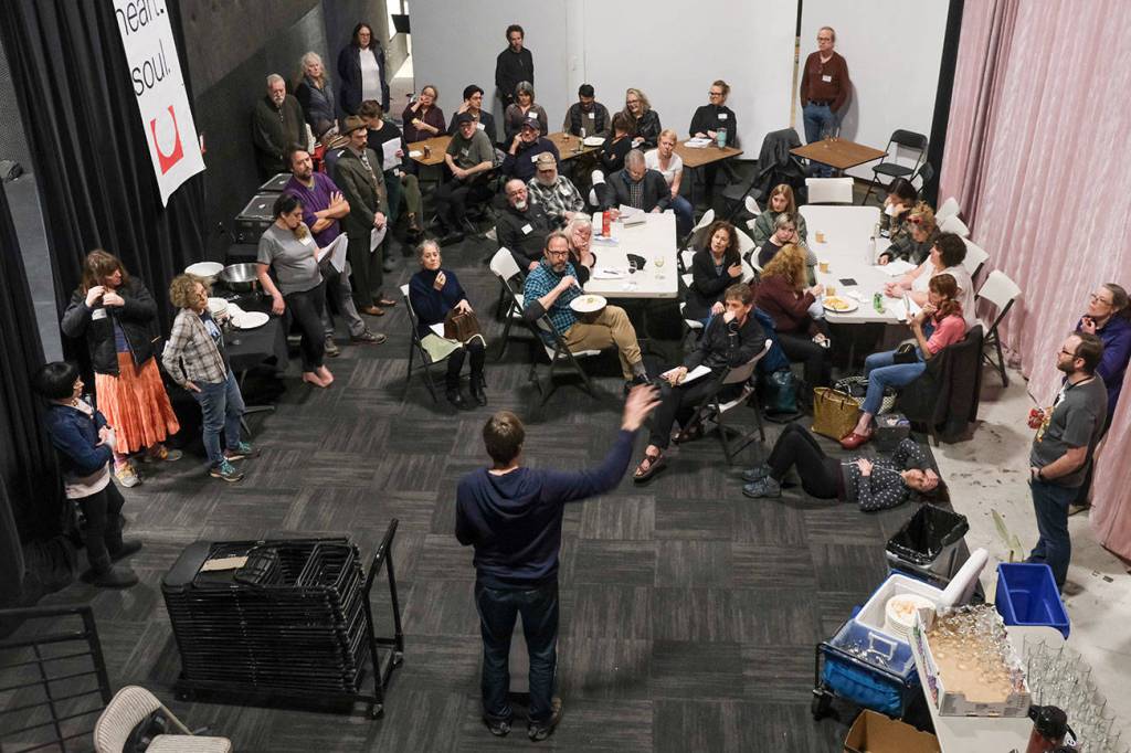 The cast, crew, writers and directors of “14/48 Vashon” took over Open Space for Arts & Community during a madcap weekend of play-making and performances on Jan. 24 and 25 (Michelle Bates Photo).