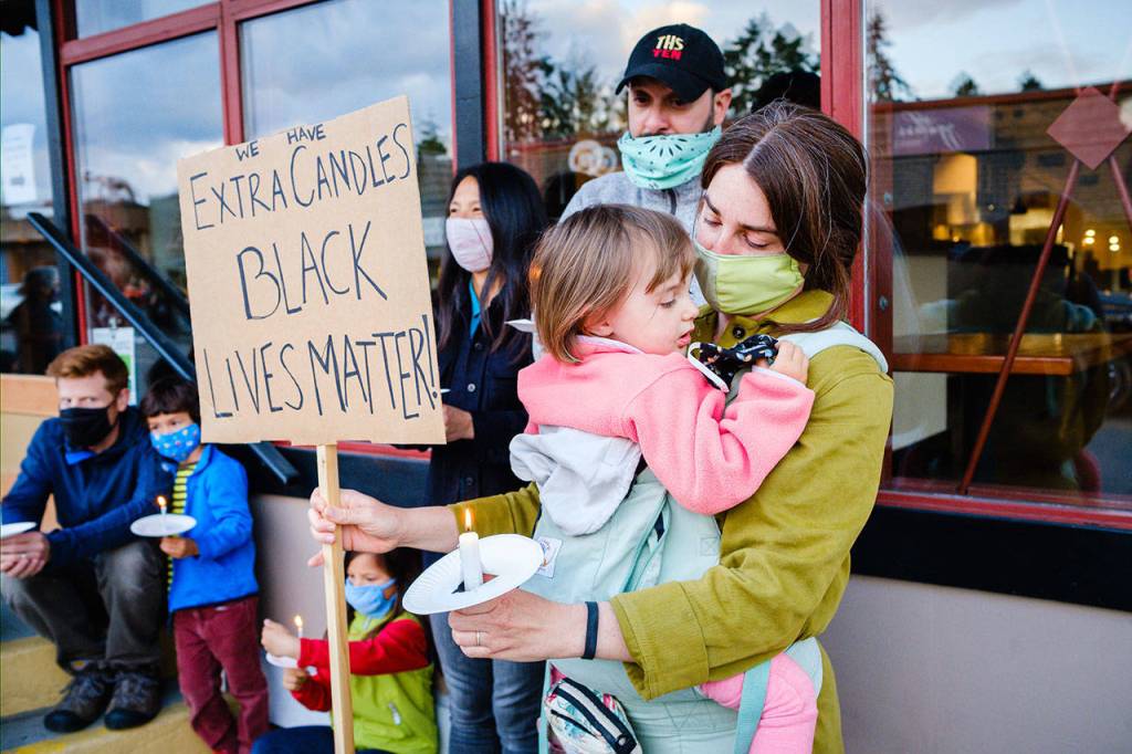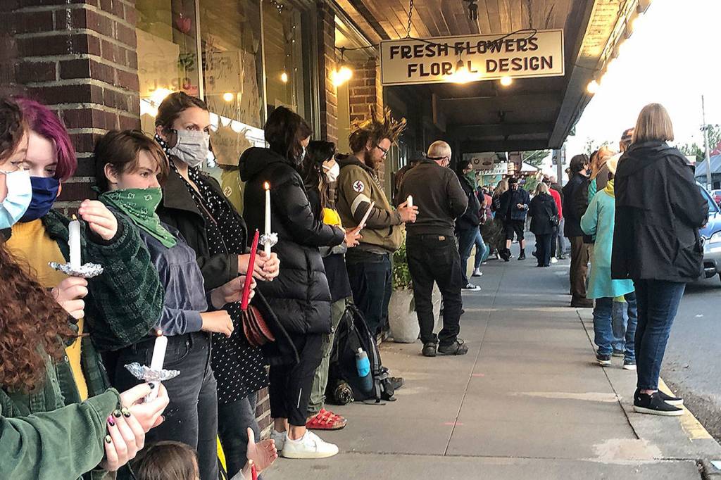 For a photo gallery of images of islanders at the vigil, visit tinyurl.com/ydgbdxml. A story about Friday’s 1,100 strong march held in solidarity with Black Lives Matter Seattle/King County is forthcoming.