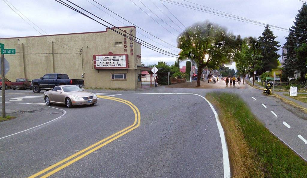 Courtesy Photo                                With a pedestrian main street, the stoplight in town would be removed, allowing traffic to flow smoothly through town without stopping during high flow times, and creating a pedestrian-friendly street through Vashon’s center.