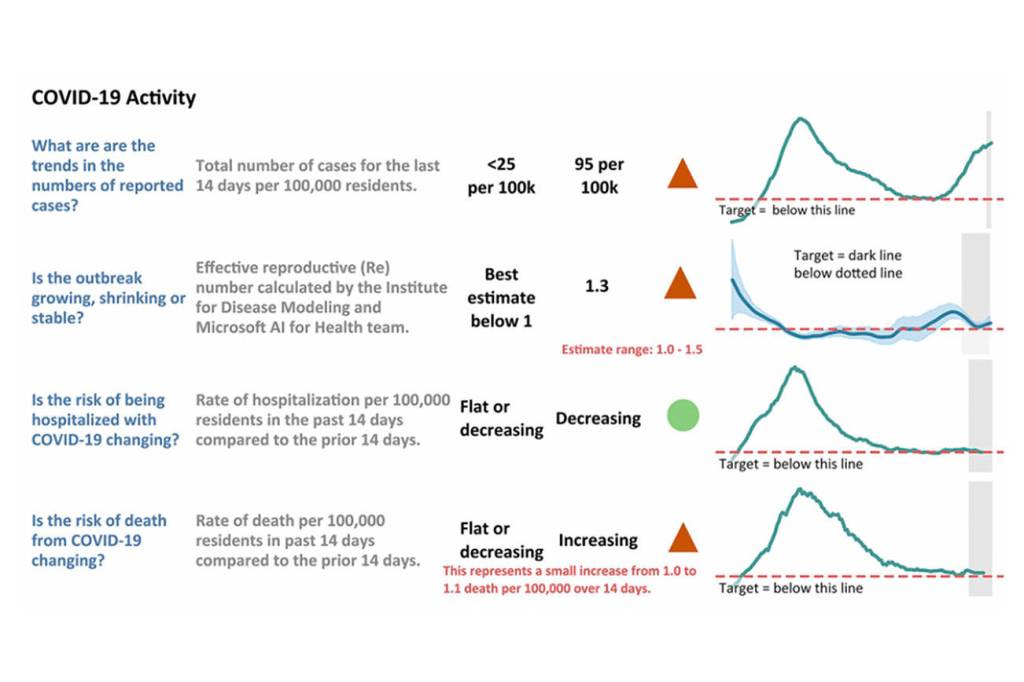 Multiple government agencies point to rising infection rates on the mainland: Vashon has been fortunate, so far, in having a much lower disease rate than on the mainland (about one-seventh the rate of King County as a whole). However, public health authorities have recently raised major concerns about the rising spread of COVID-19 around us in King County and around the state. The state Department of Health said, “transmission is accelerating statewide and will continue to do so in the absence of decisive preventative action. Washington state is in the early stages of an exponential statewide outbreak.” In a news conference, the Governor said that almost every part of the state is “on the path to runaway transmission rates of COVID-19,” adding that Washington is in a place similar to where Florida was several weeks ago.