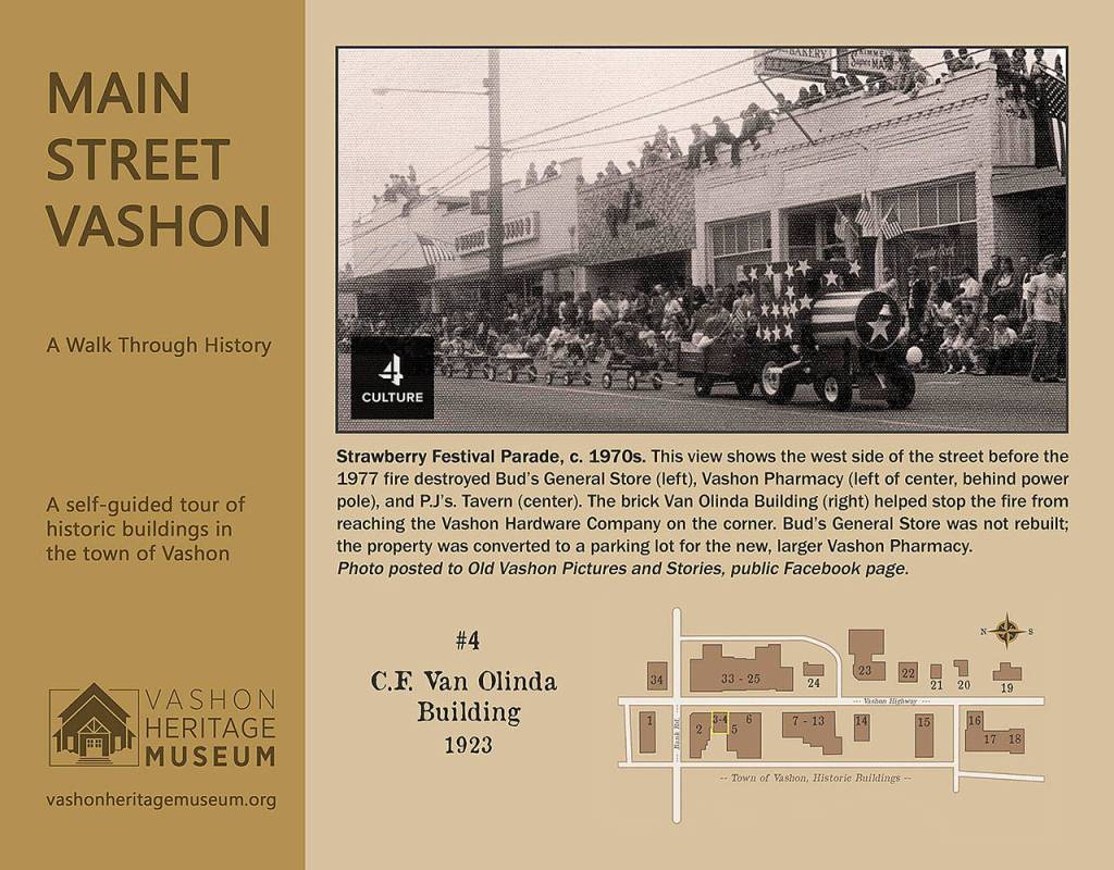 The walking tour, he said, is “a tribute to the building owners and businesses that all contributed to create the Vashon that we see now.”