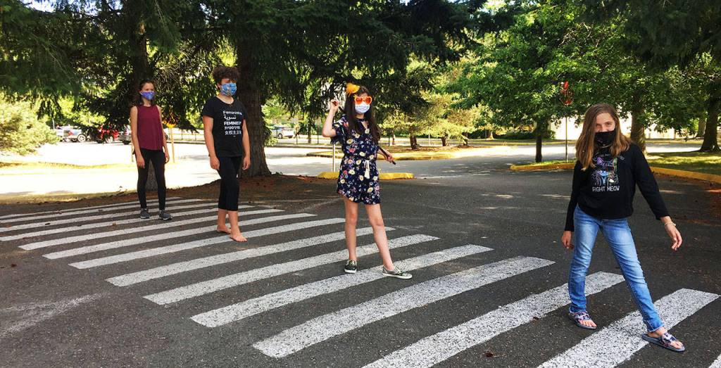 (Left to right) Selene Dalinis, Raena Joyce, Maarten Ribalet-Coesel and Lucca Hansen are Vashon’s newest unofficial mayors, and the first island youths to hold the office. They ran in the Vashon Chamber of Commerce-sponsored contest to raise money for Vashon Sisterhood, a local nonprofit (Elizabeth Shepherd Photo).