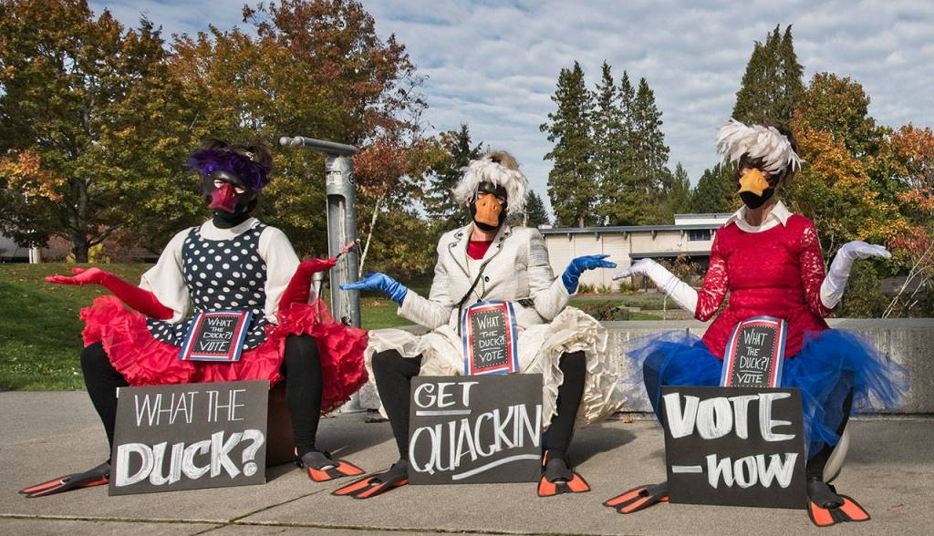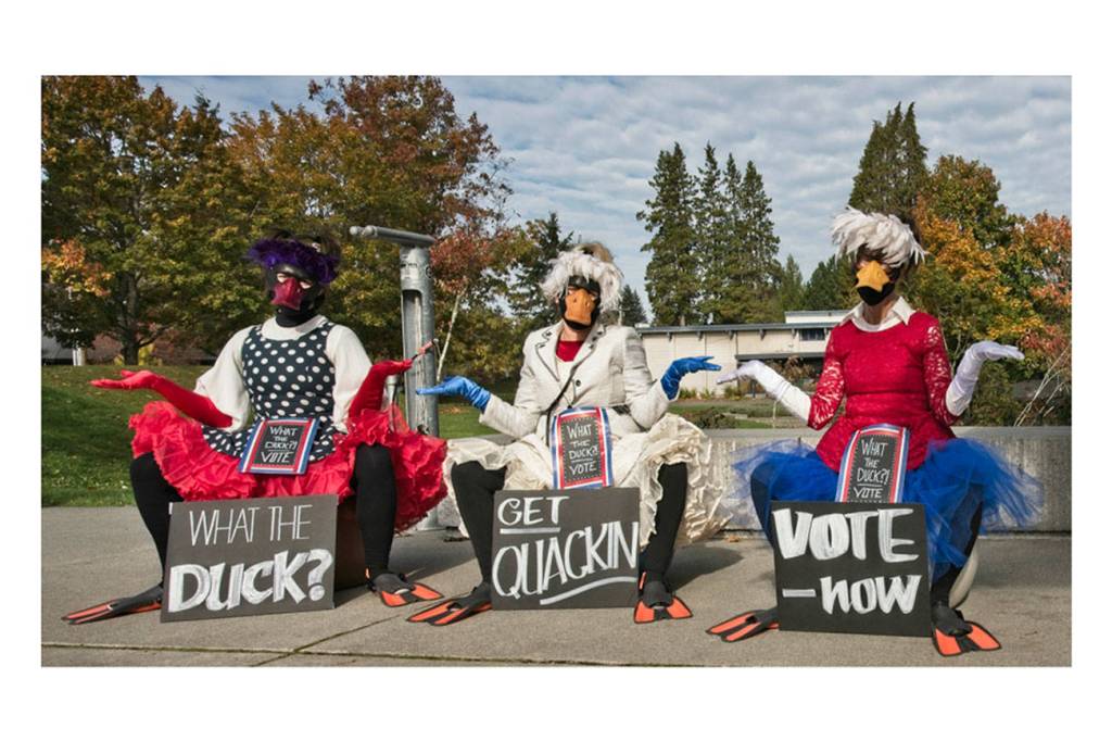 A humorous effort to get out the vote by Mik Kuhlman Productions has brought this trio of ducks to various locations on Vashon in recent weeks.