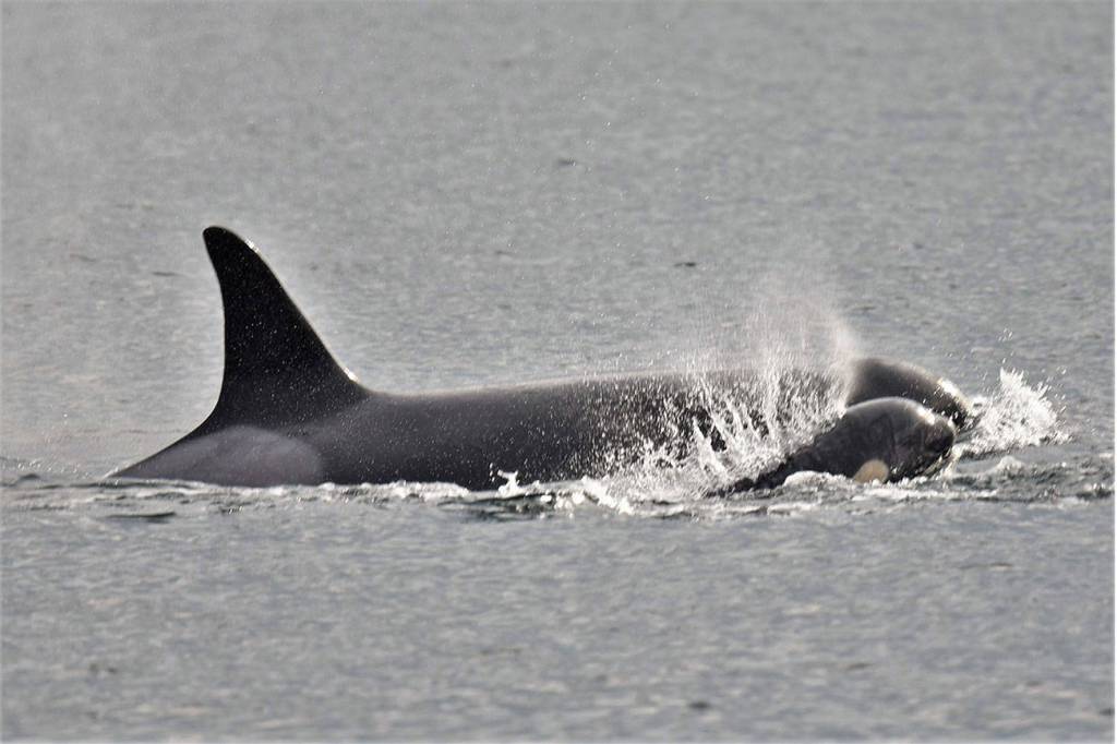 Pictured here are Suttles (J40) and baby Tofino (J56). Suttles has served as a babysitter and nanny since Tofino’s birth in May of 2019.