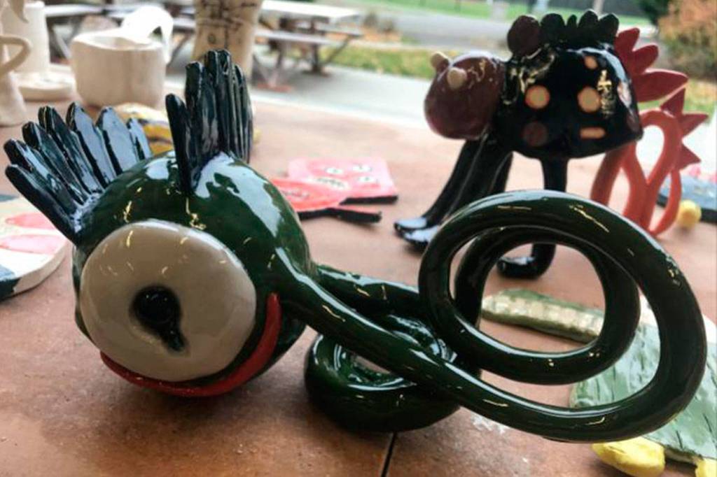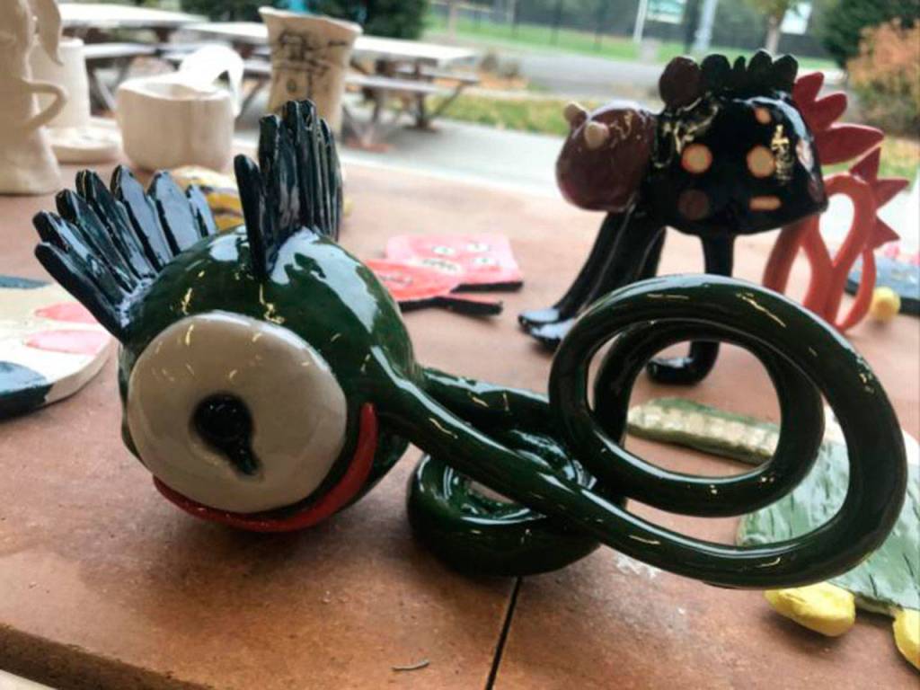 Around October, Brenno’s kindergartners draw monsters in their art class. Those fancifully drawn beasts go to students in Kristen Adams’s VHS ceramics class, where they are each challenged to render a kindergartners’ monster in ceramics. And that’s where the risk comes in.