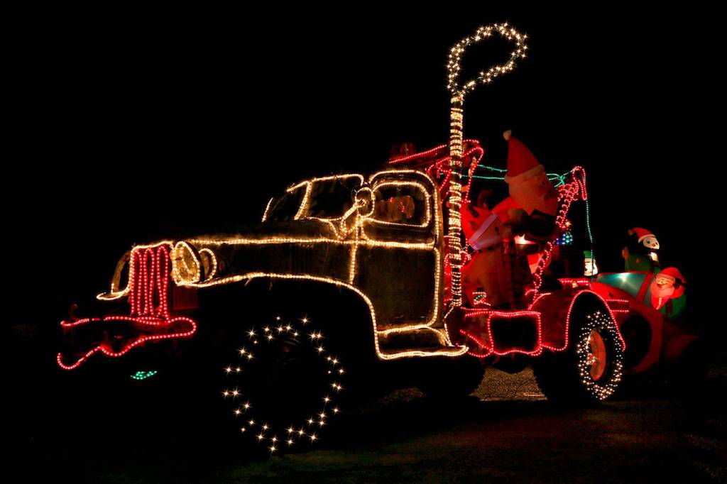Now, in later years, the trucks no longer tow cars or trucks but carry a most important precious cargo — Santa Claus, his reindeer and sleigh full of presents.