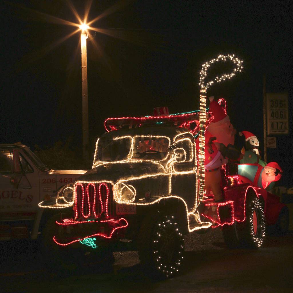 Note: At The Beachcomber, we are delighted to share this Christmas letter, with great news. Even in 2020, holiday lights will still shine in a warm, retro way at Engels Repair and Towing, on Maury Island. Last week, we reported a case of COVID-19 in the Engels’ workplace, but now, happily, everyone at the station is well, back to work and ready to celebrate the season. Be sure to drive by this iconic island location for an island tradition that can’t be dimmed even in this hard year.