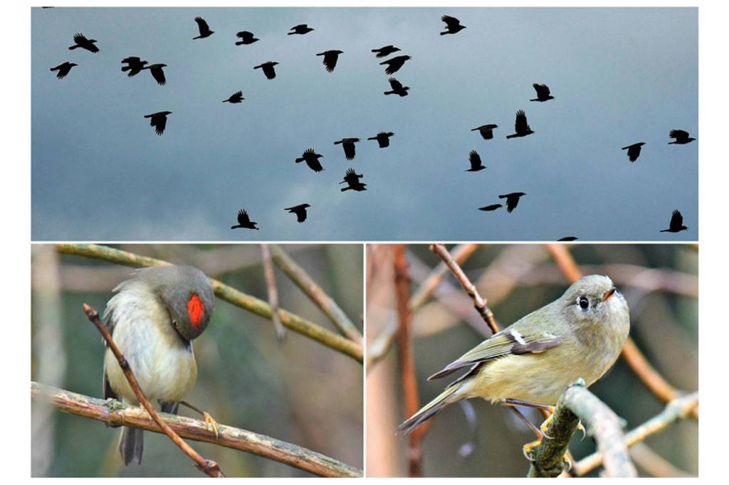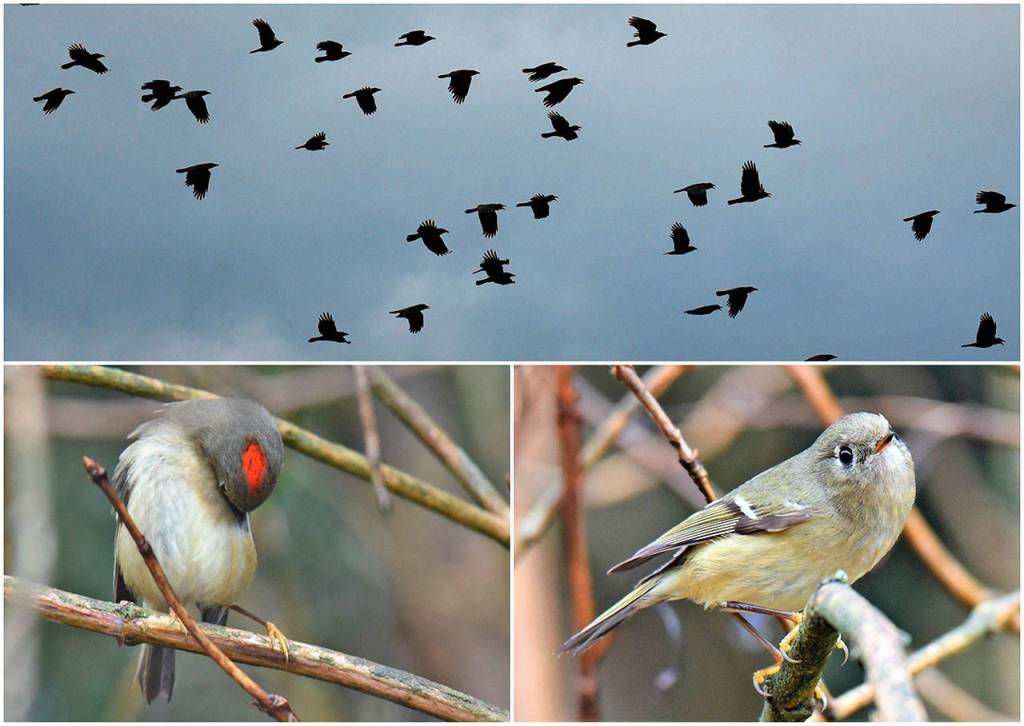 The photographs here were taken by Diers on Jan 3 (crows, top) and on Jan. 1, when he had a better day, capturing hard-to-get images of Ruby-crowned Kinglets — birds that are small (about 4 inches) and very flighty (bottom). Diers said he also saw kinglets during the Audubon count.