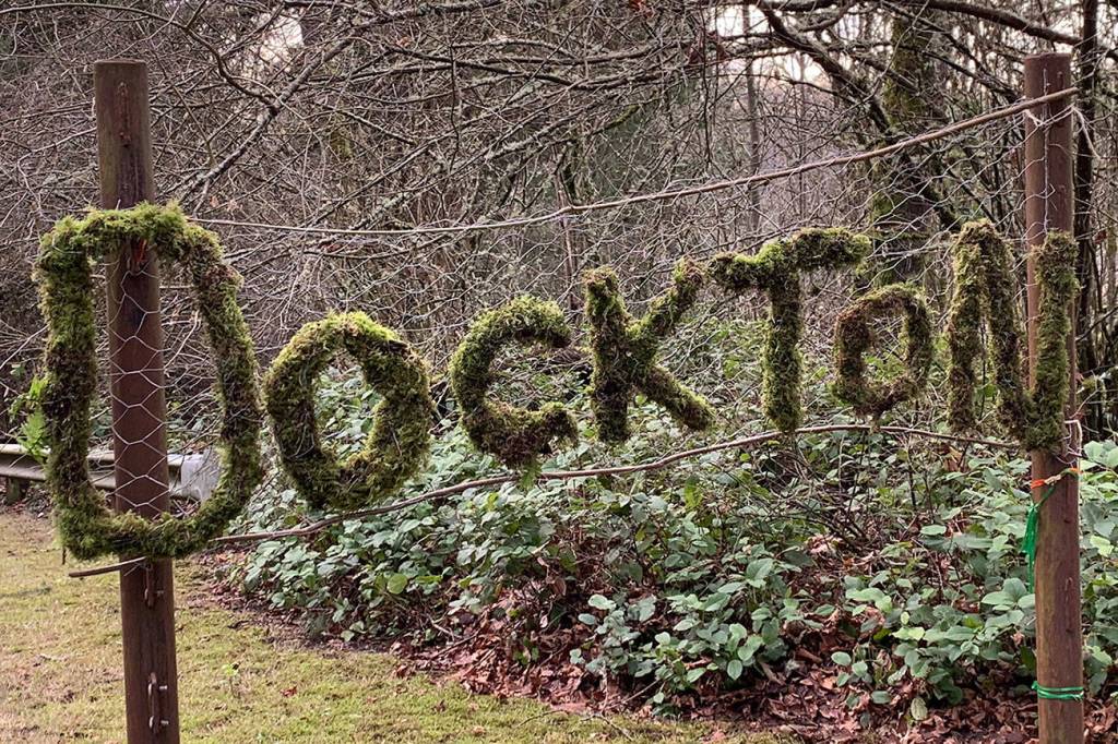 A mossy sign welcoming visitors to Dockton has sprouted up where, last spring, culprits snatched the big, stainless steel one that had been there since 2010.