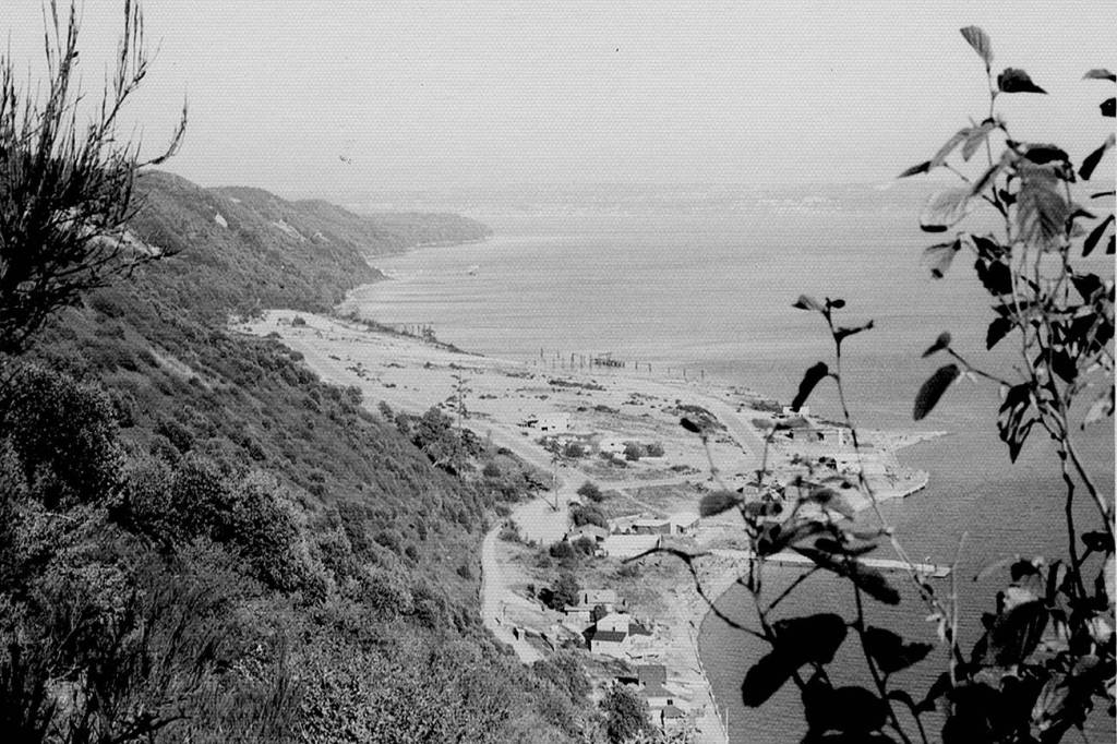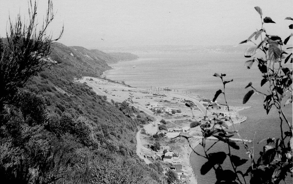 The 1976 photograph taken from the bluff to the south of the development shows Lower Gold Beach with a handful of homes built, the clubhouse and dock at the south end of the development, and the pilings for barging away the excess sand and gravel at the north end of the site (Photo Courtesy of Vashon Heritage Museum).