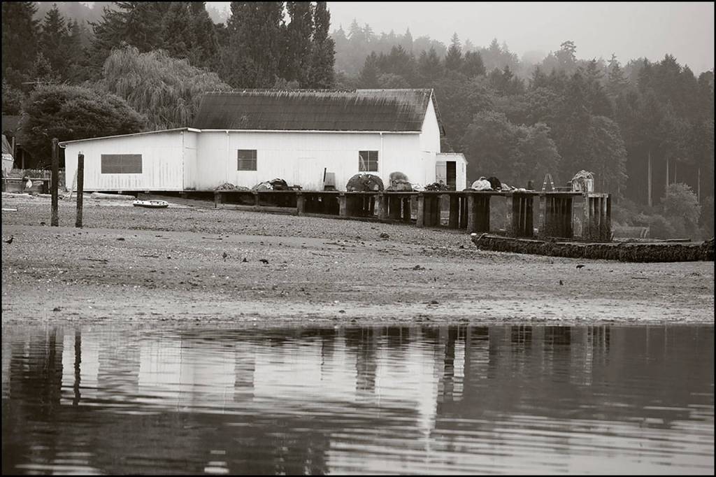 Today, the Dockton waterfront south of Dockton Point is a quiet place with a line of low bulkheads and shoreline houses broken only by the historic Plancich Net Shed.