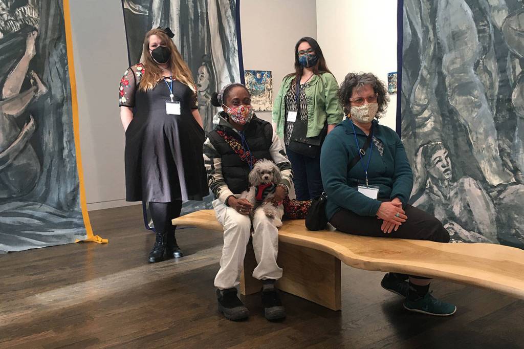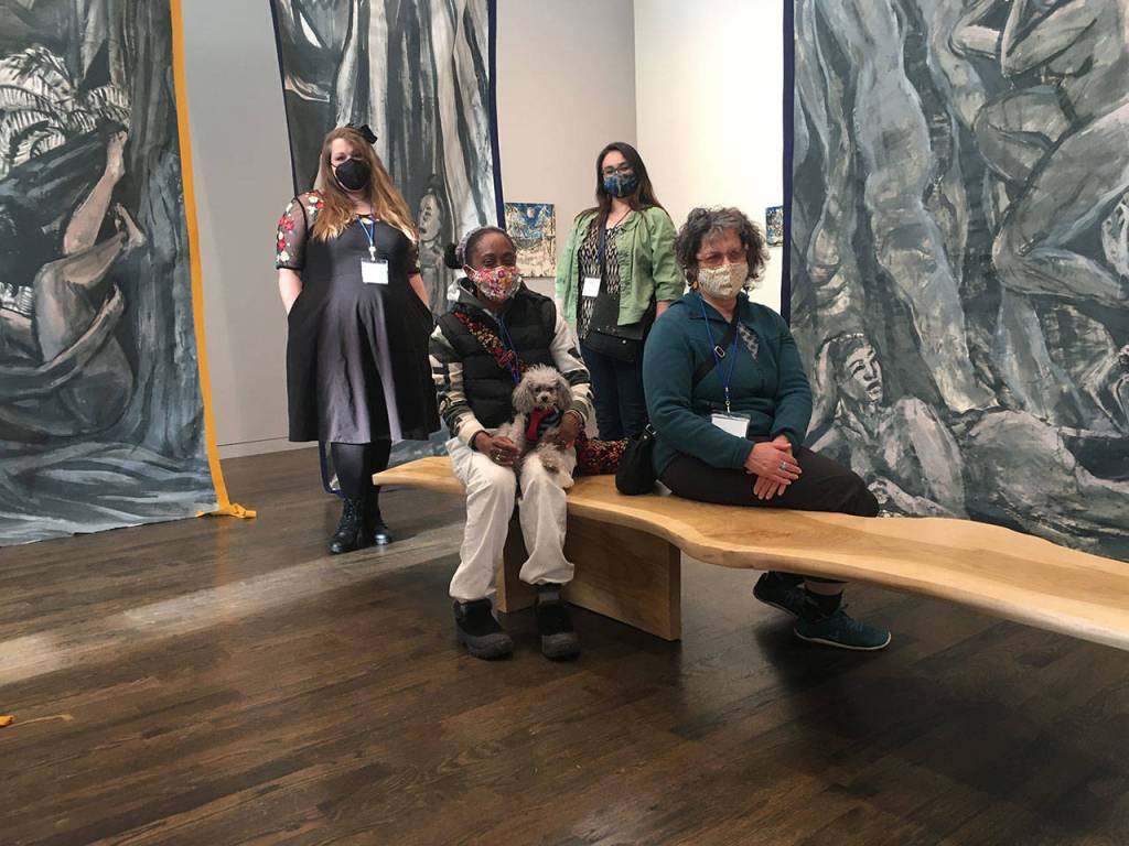 Artists Beverly Naidus and Carol Rashawnna Williams (seated left to right) and Sydney M Pertl and Devon Midori Hale (standing left to right), were present for the opening of their group exhibition, “Collective Power: Earth Systems Through the Female Vision,” at Vashon Center for the Art on Friday, April 2.