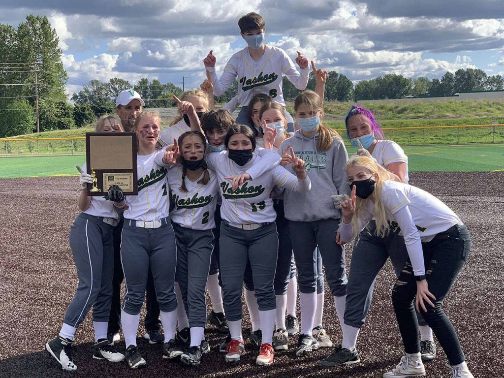 The VHS fastpitch varsity softball team played the final game of the 2021 season against Bellevue Christian for the Nisqually League championship. The Pirates, led by four seniors, including shortstop Rachael Freebourn, third base Leela Hendon, first base Pippa Slade and pitcher Tamsen Henry, started the season with a 20-1 shellacking from Cedar Park Christian in a non-league game. They then went undefeated for the rest of the season and earned the number one seed for this championship game.