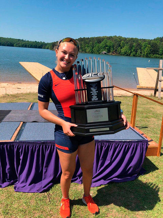 It’s been quite a few weeks for Burton Beach Rowing Club alumna Kate Kelly. She is the only freshman in the top three boats at the University of Virginia and was the bow seat of the Virginia Varsity 8+ that won the Atlantic Conference Championships last weekend.