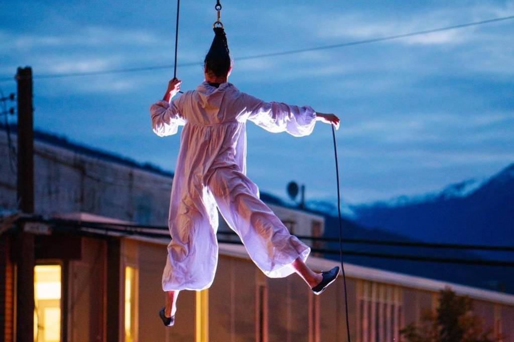 What do an opera virtuoso, a 99-year-old flying piano, a human ceiling fan, and the world’s largest wedgie have in common? For one day only, they will be on Vashon as part of the show at Up Up Up Inc. — a crane truck circus show that will be performed outdoors at Open Space for Arts and Community.