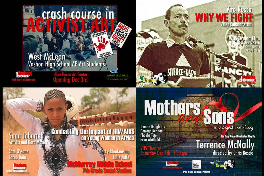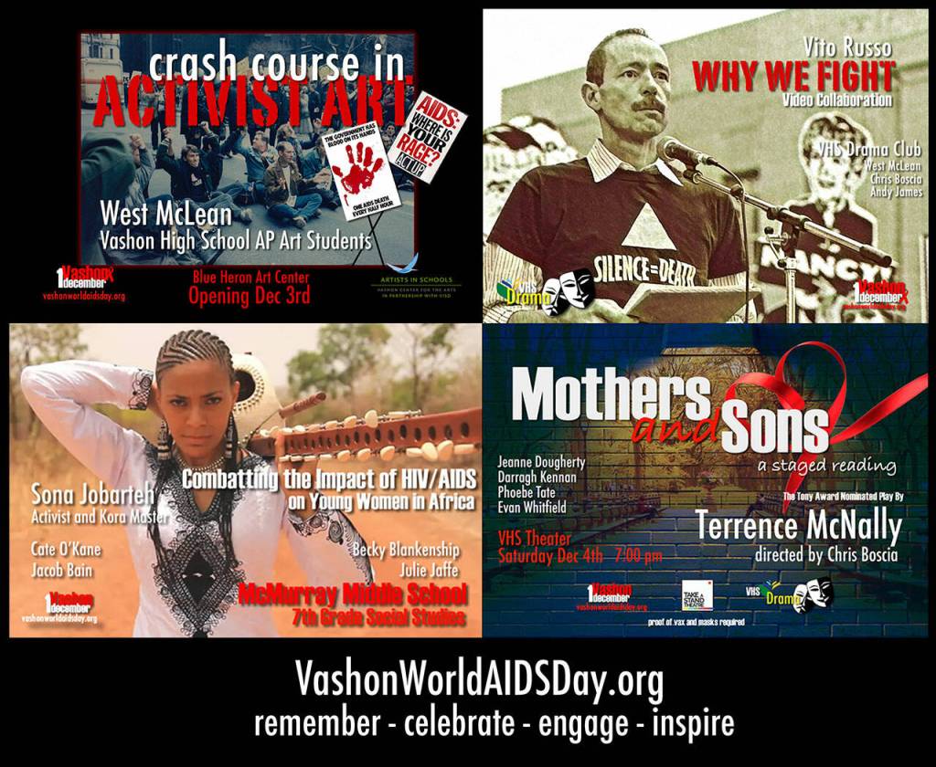 These events include a staged reading of Terrence McNally’s Tony Award-nominated play “Mothers and Sons,” a presentation to McMurray Middle School 7th graders about young women in Africa who experience the highest rate of HIV/AIDS anywhere in the world, a recreation of AIDS activist Vito Russo’s 1988 speech “Why We Fight” by the Vashon High School Drama Club and a “Crash Course in Activist Art” exhibit made by Vashon High School AP Art students.