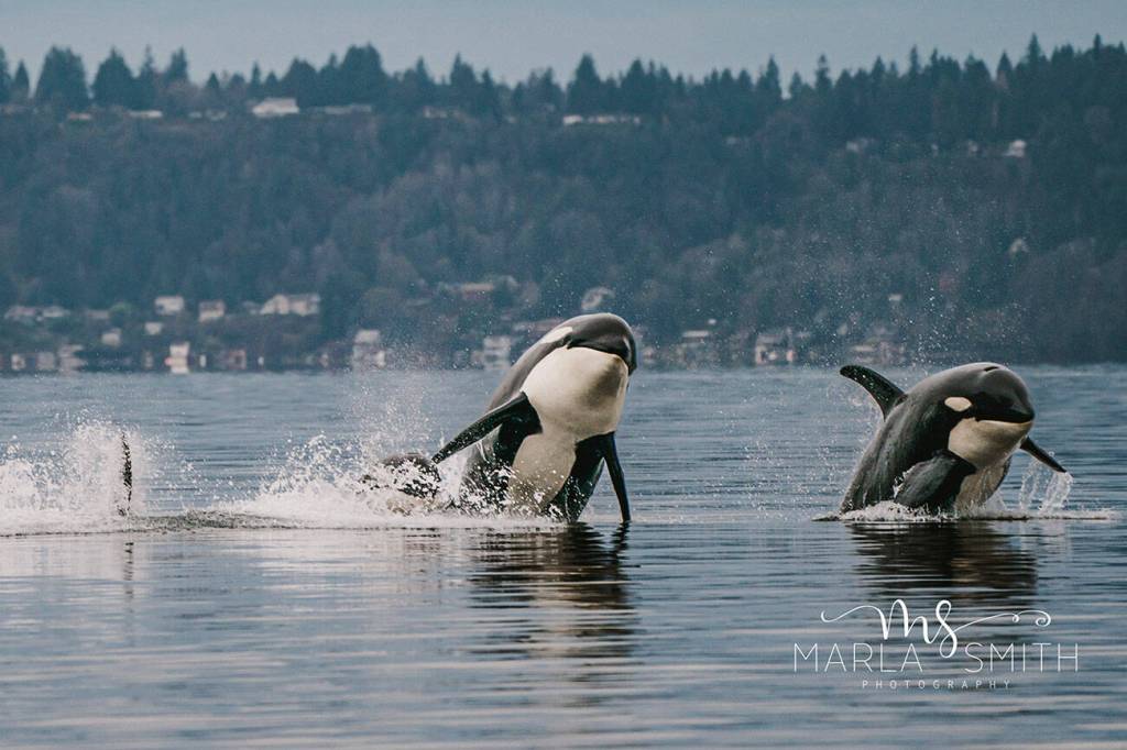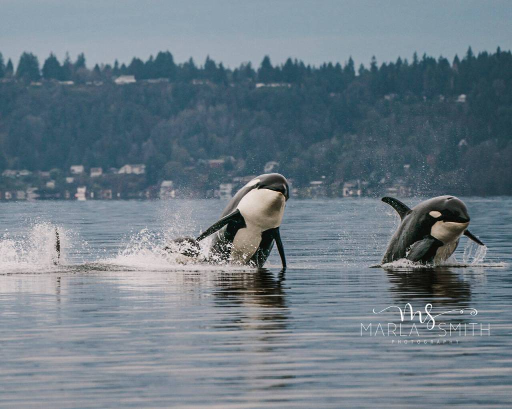 In the late fall and early winter, chum salmon start running in South Puget Sound, which brings the fish-eating Southern Resident Orcas as seasonal Vashon visitors. Last week, the whales’ first visit of the year kicked off a multi-day extravaganza of rising fins, spy hops, full-body breaching and tail flukes. Pictured here are J-Pod whales at Point Robinson on Nov. 25. (See Amy Carey’s commentary about the parade of whales and the plight of Orcas.)