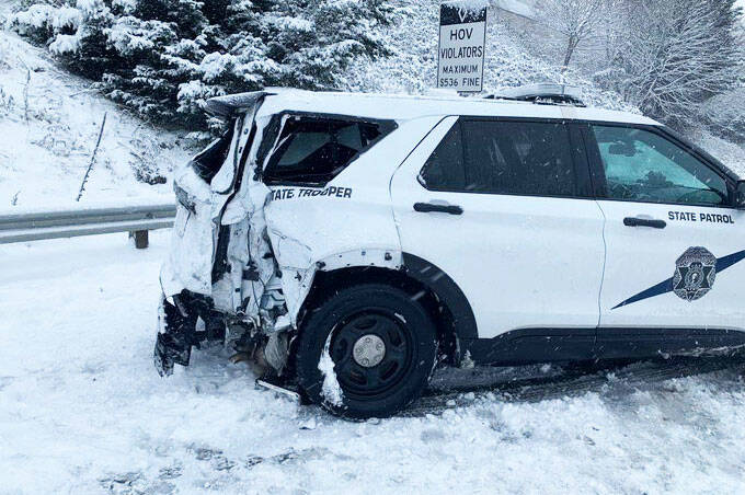 Numerous lanes were blocked Dec. 26 along northbound Interstate 5 near Southcenter in Tukwila after a trooper’s SUV was struck, according to the State Patrol. The trooper was not injured.