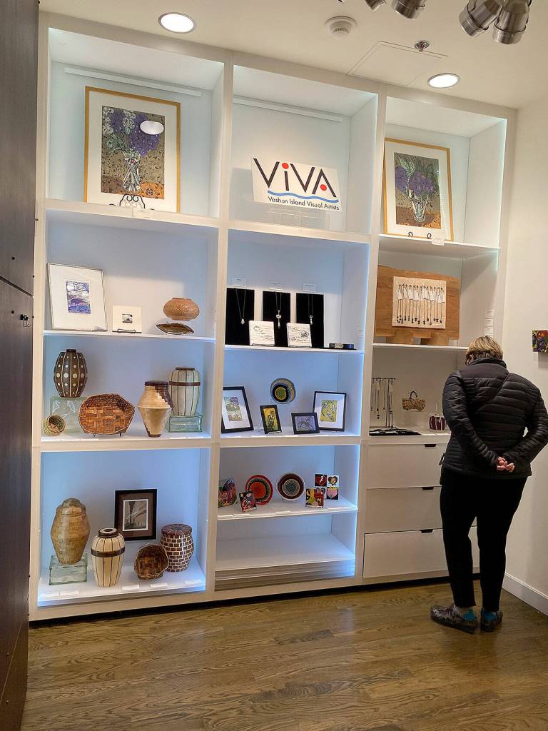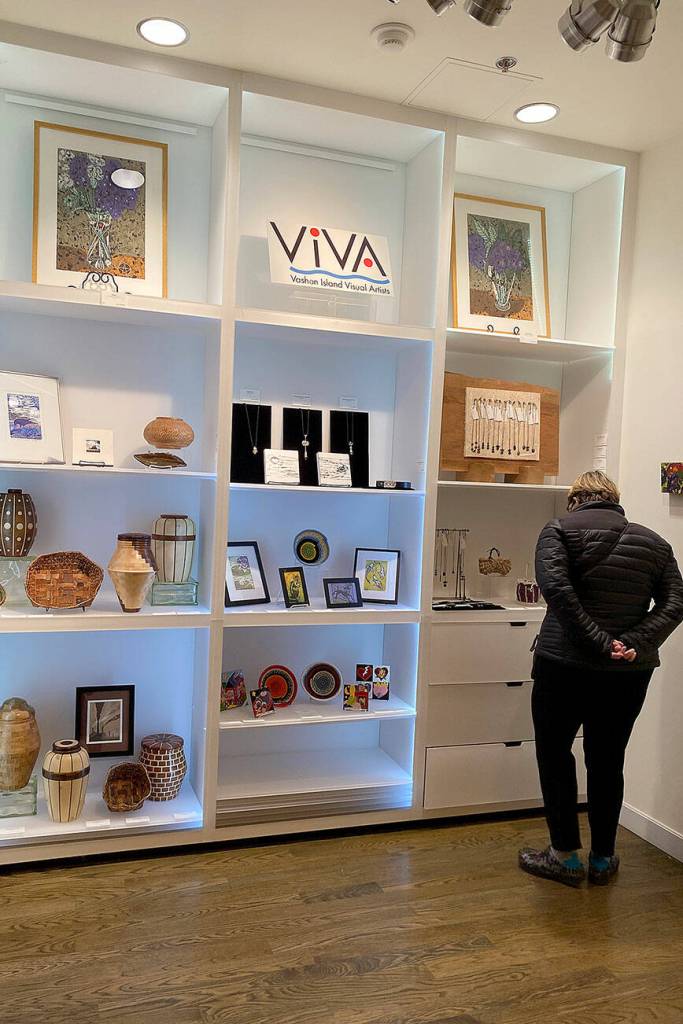 Work by artists who are members of Vashon Island Visual Arts fills the shelves and walls of Vashon Center for the Arts’ gift shop this month. The pieces on display include six wood memorial urns by Lyle Harris. Other artists include Don Cole, Gordon Barnett, Gale Lurie, Penny Grist, Robert Thomas, John Woodard, Kate Rutherford, Barb Gustafson, Irene Otis, Margaret Smith, Annette Messitt, Laurie Brown and Lynn McClain.