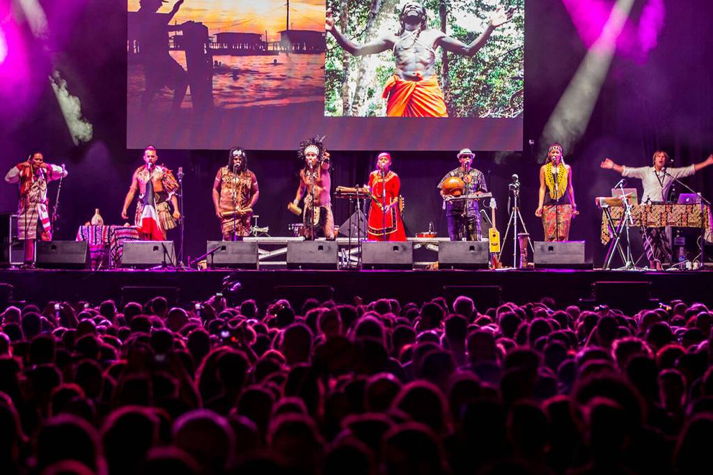 (Photo Courtesy J.Ortega from Etnosur Festival) “Small Island Big Song” includes eight musicians and vocalists from the nations of New Zealand, Taiwan, Australia, Madagascar, Solomon Islands, Mauritius, Marshall Islands, Papa New Guinea and Tahiti.