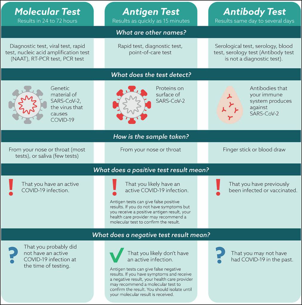 (Graphic Source: DOH.WA.GOV/Coronavirus) Use this chart to help decide which COVID test to get.