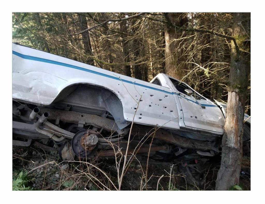 Damage to the truck was extensive, as the tires had been removed, the windows and transmission were gone, and there were bullet holes throughout the side of the vehicle. Engine components had also been pulled out of the truck, Seidenberger’s truck box in the bed of the vehicle was gone, the radio had been pulled and the gas tank was also pulled from the truck. The headlights and tailights were also removed.