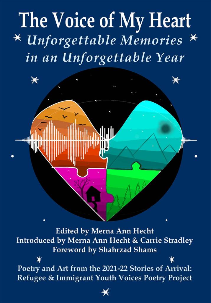 In celebration of the book, “The Voice of My Heart: Unforgettable Memories in an Unforgettable Year,” and the previous book, “We Are the Future: Poems with a Voice for Peace,” compelling broadsides of refugee and immigrant art and poetry will be on display for First Friday and all of July at Anu Rana’s, on Vashon.