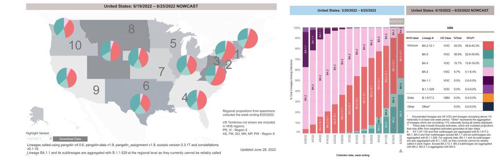 BA.4 and BA.5 now account for more than half of new COVID-19 infections in the United States, according to the US Centers for Disease and Prevention (CDC). For the week ending June 25, CDC data show that BA.4 and BA.5 accounted for more than 52% of cases nationwide and in the Northwest region, which includes Washington, Idaho, Oregon and Alaska.