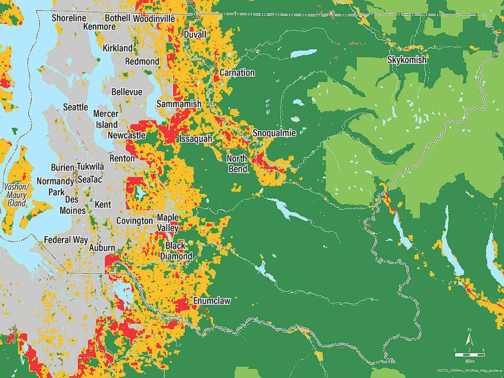 Many parts of the Enumclaw Plateau expose residents to these wildland-urban interfaces, as do areas in the northeast county such as Issaquah, Snoqualmie and North Bend, as well as cities such as Auburn and Renton.