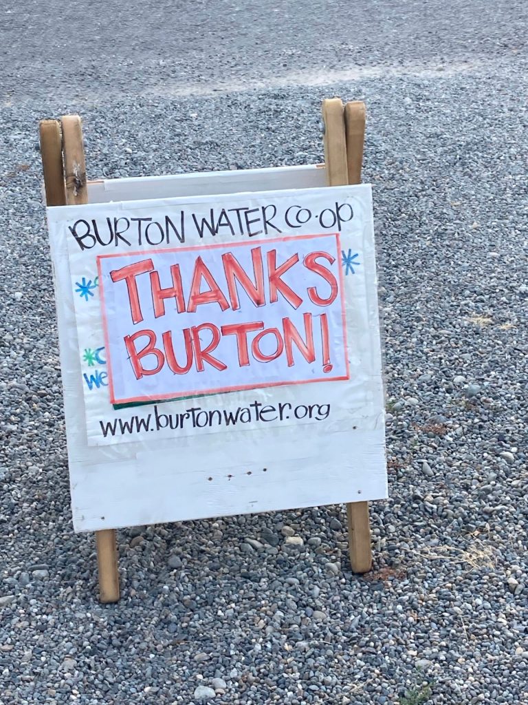 The board of the Burton Water Co-op put three of these signs up at key Burton intersections after 74% of Burton’s current water customers responded to a straw poll asking if they supported community ownership of Burton’s water company. Of those respondents, 96.5% said yes. (Courtesy Photo)
