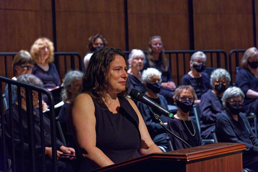 Lia Lira introduced Mozart’s “Requiem,” presented by Vashon Island Chorale, on Sept. 11. (Rick Wallace Photo)
