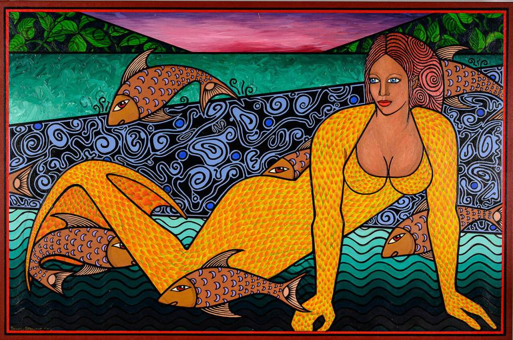 Bryon Stewart’s painting of a magnificent mermaid is up for bid in VCA’s annual auction.
