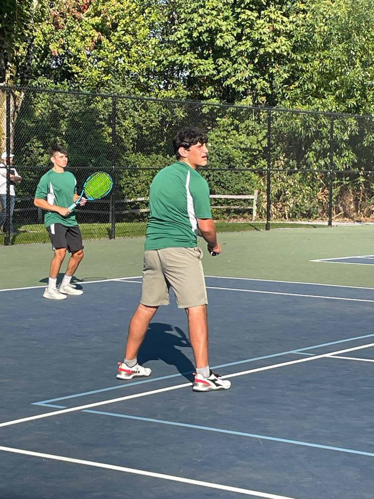 The VHS #1 doubles team, Hatcher Freda and Danny Baldinger, also had their hands full, in a protracted two-set victory over CWA players Sam Brink and Conner Iverson.