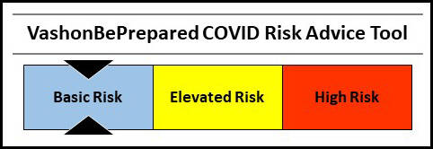 The risk level estimate is based on data from the state Department of Health’s COVID dashboard. The risk estimate has been customized to Vashon’s particular situation because it takes into account that Vashon is in a three-county COVID exposure pool —King, Pierce, and Kitsap.