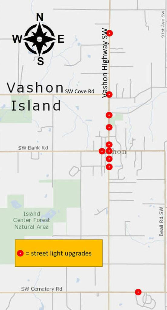As part of the work, crews will perform tree trimming along Vashon Highway SW, near the town core, between 9 a.m. and 7 p.m. Sunday, Dec. 11, in preparation for the lighting improvements.
