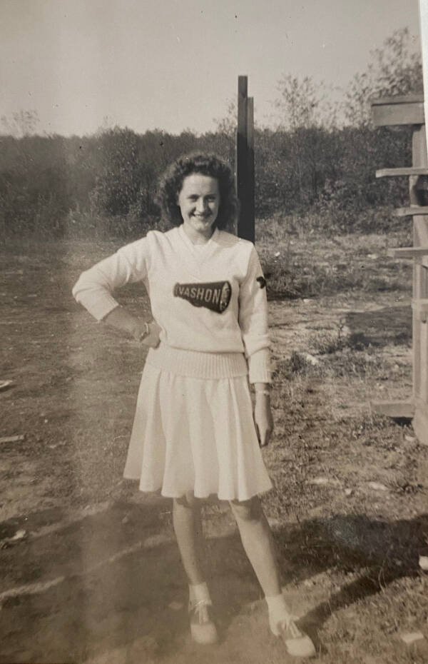 Barbara — who by this time was a well-traveled retiree and devoted grandmother and great-grandmother, but still a mover and shaker on Vashon, celebrated the opening of the new track in high style — attending the first meet there wearing the same cheerleader’s sweater that she had worn in high school in 1947.